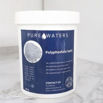Hold dit antikalkfilter effektivt med PureWaters Polyfosfat Kugler – Refill 500 g.