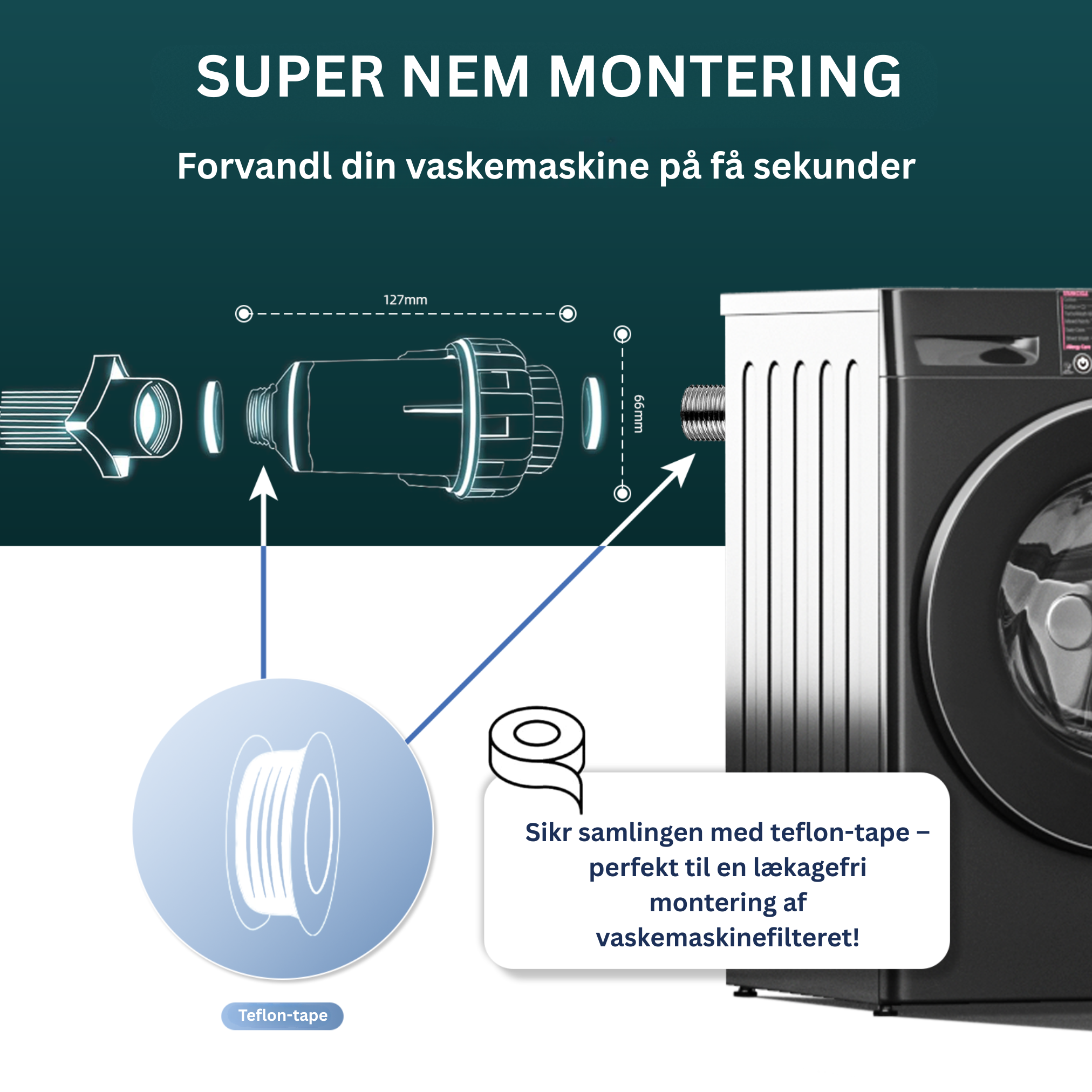 Ja. Skru det på mellem vandtilførsel og indløbsslangen. Vikl 6–8 omgange teflon-tape på gevindet for tæt samling. Det tager ca. 3 minutter.