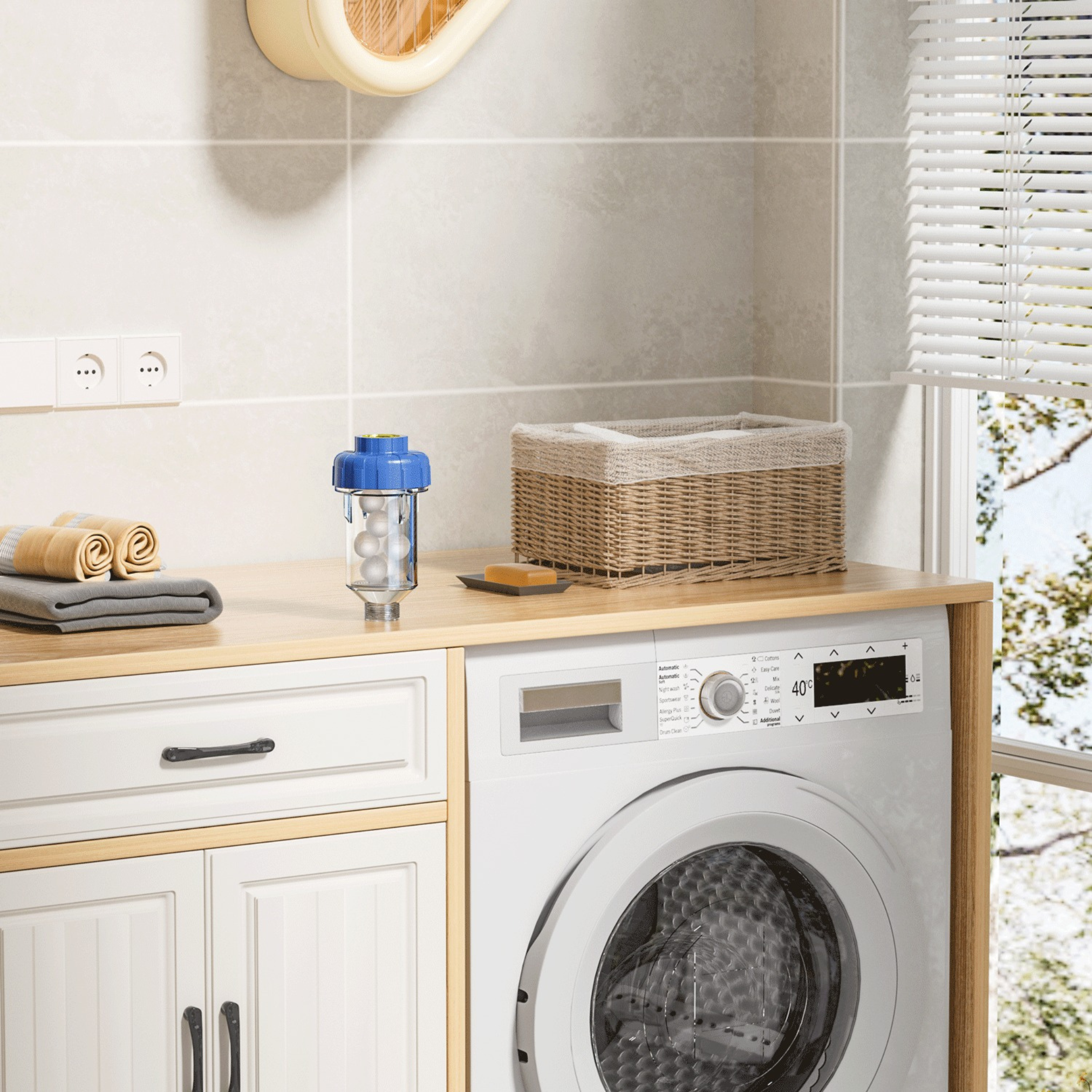 Antikalk inline-filter til vaskemaskine, opvaskemaskine og vandvarmer/boiler. Mindsker kalkaflejringer, beskytter varmelegemer og kan forbedre resultaterne. Monteres på få minutter mellem vandtilførsel og apparat (teflon-tape medfølger). Udskift antikalk-kugler hver 6. måned.